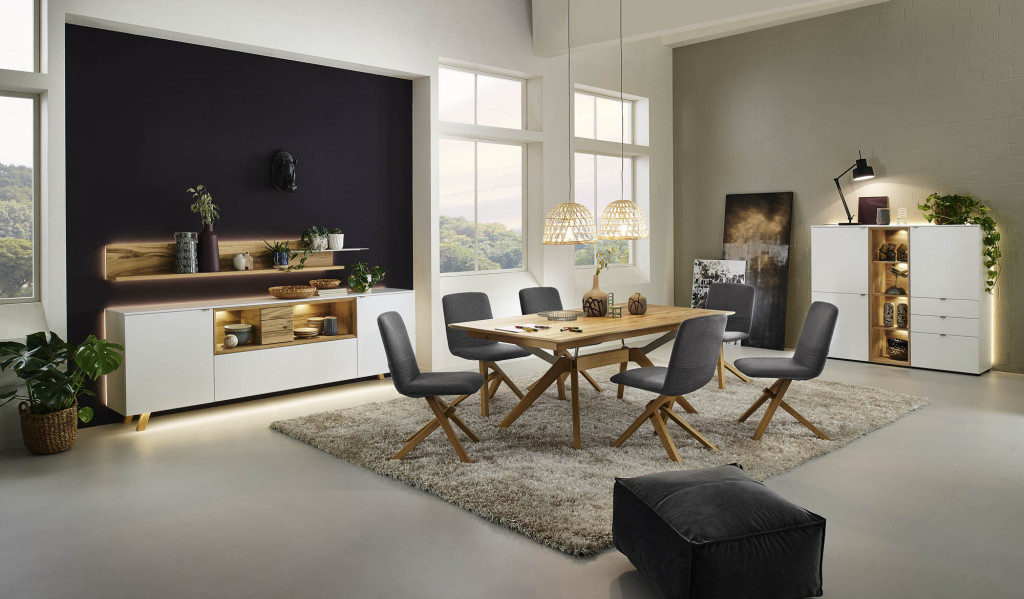 Lack kristallweiß matt, Eiche rustico hell geölt,