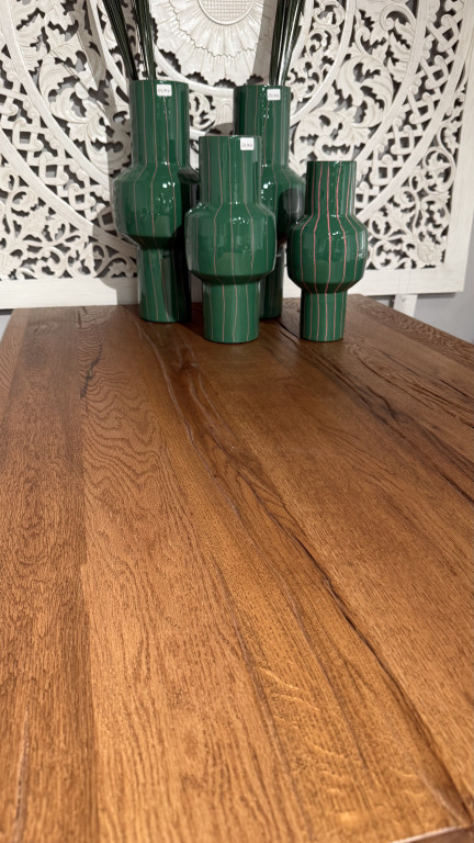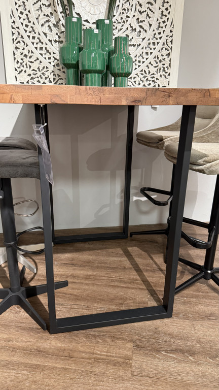 Wildeiche Massiv, dunkel lackiert Maße 120x80 cmHöhe 107 cmGestell U-Profil schwarz