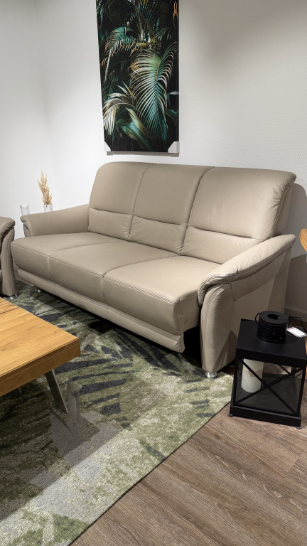3 Sitzer mit motorischen Sitzvorzug 2,5 Sitzer fest Sitzhöhe 49 cm Füße alu Leder beige
